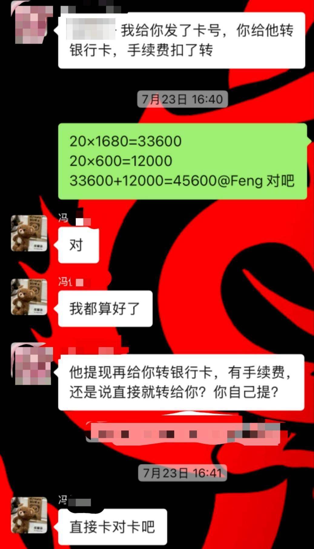 而这次疑似上圈套的东说念主当中,还有不少东说念主是冯某某的同事。刘女士21日领受红星新闻记者采访时暗意,因为和冯某某谙习。从本年7月25日到8月3日,她前后给冯某某转账共9笔共计28300元,用于购买王力宏、陶喆演唱会的门票。