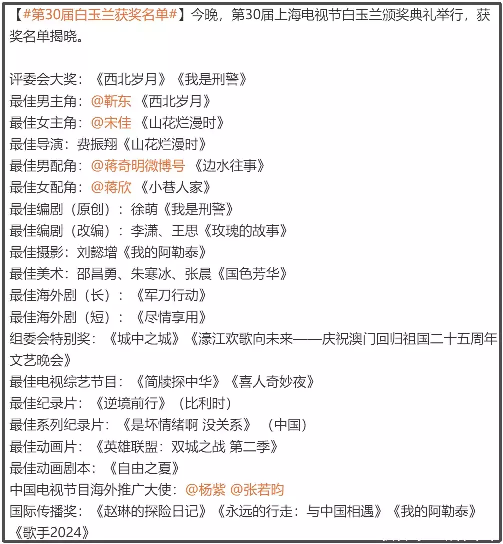 终末附上2025年白玉兰奖完好意思获奖名单。