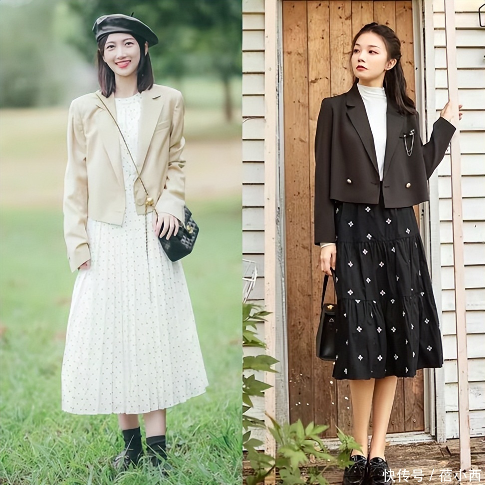 普通搭配一定要刺目打造出高腰线,这关联词匡助咱们去修饰体魄比例的要点,尤其是小个子还有比例五五开的女性更是应当去借助这种短款的上衣配和高腰的裙子。